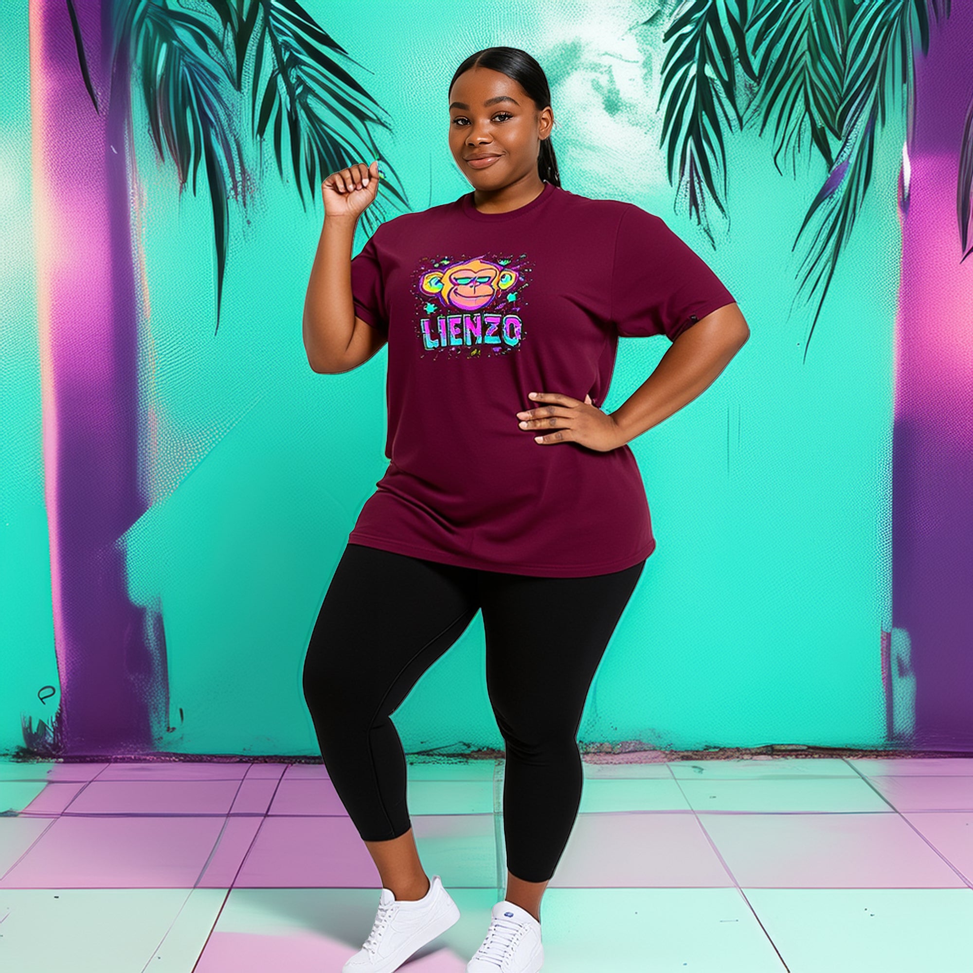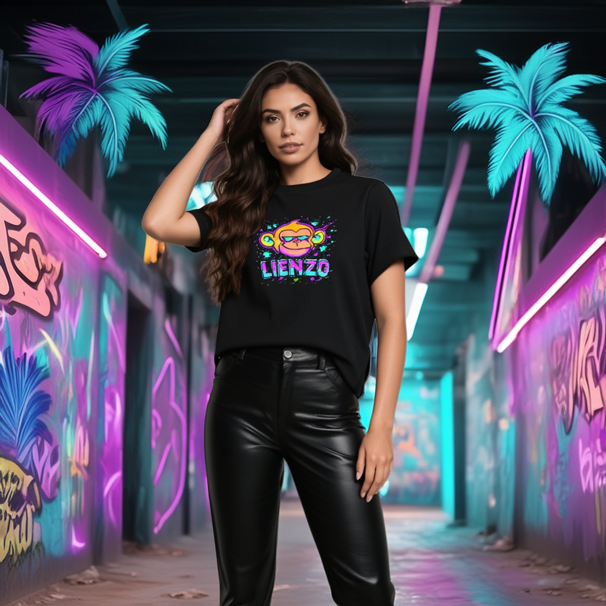 Le Neon Monkey Graffiti est bien plus qu’un t-shirt — c’est un clin d’œil à la culture urbaine des années 90 : jeux d’arcade, graffitis, skates et sons old school dans les oreilles.
