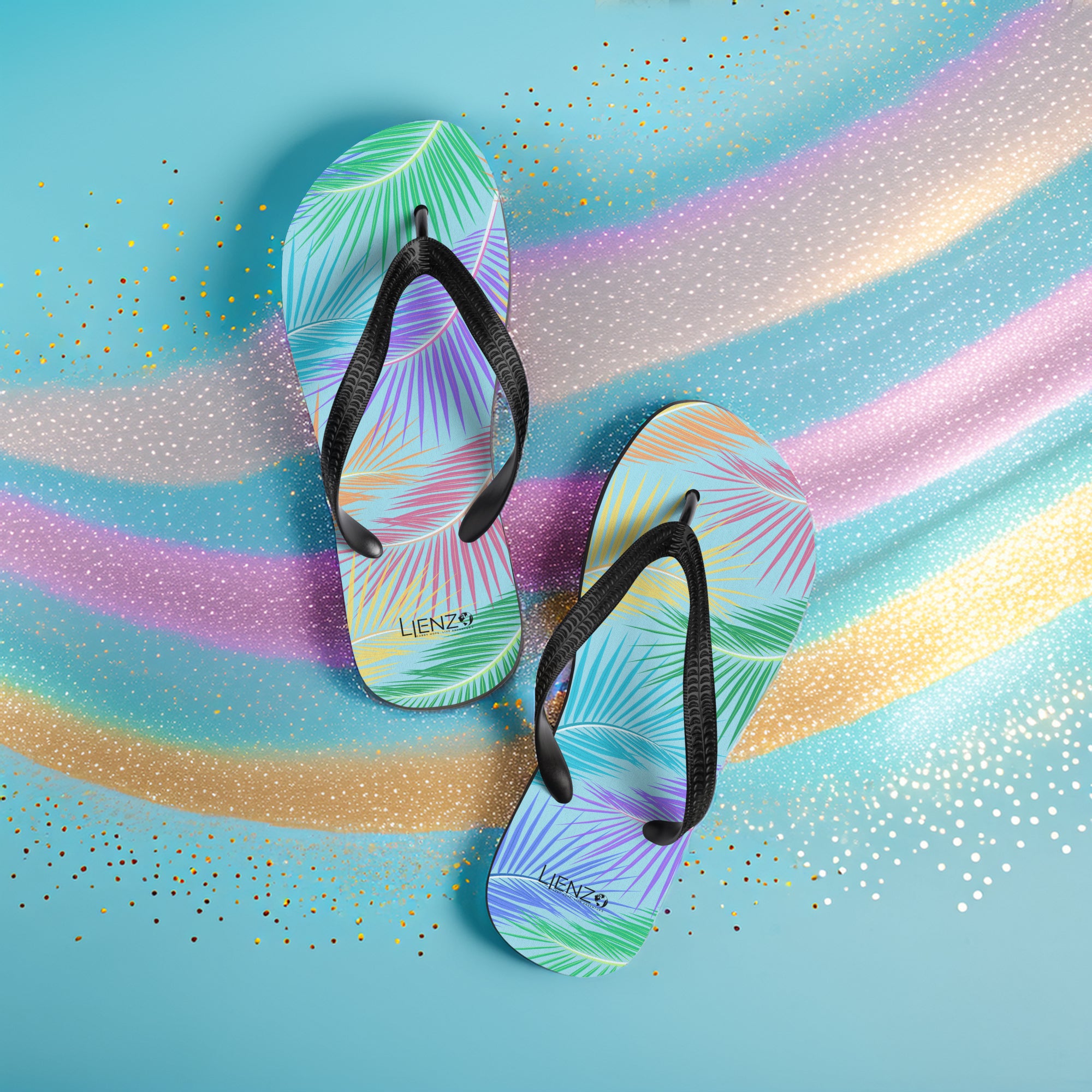 Des tongs colorées nées pour marcher sur la liberté — ou simplement jusqu’au bar à smoothies.