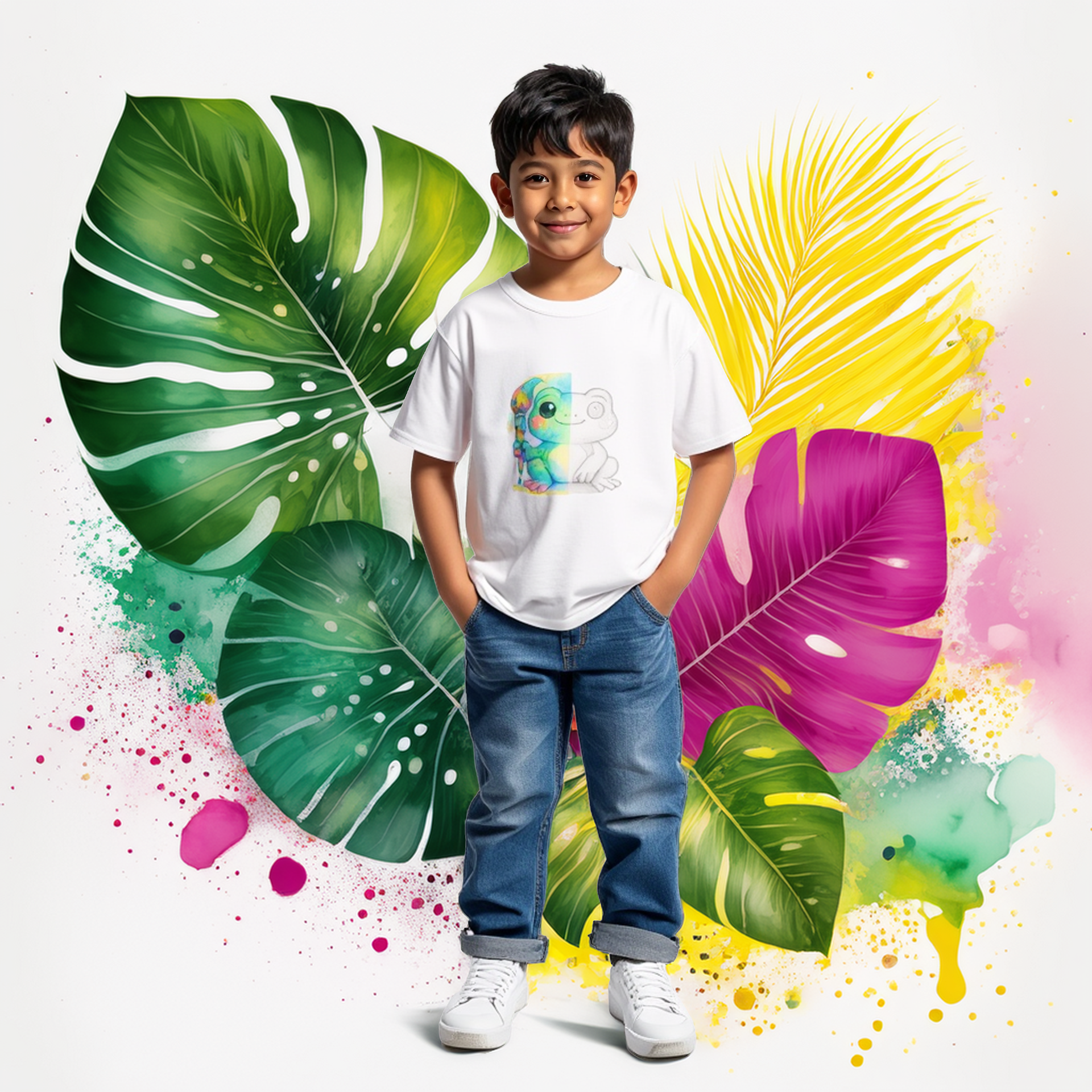 Le T-shirt “Baby Frog Glow” célèbre la créativité, la joie et la légèreté à travers un petit héros plein de curiosité.