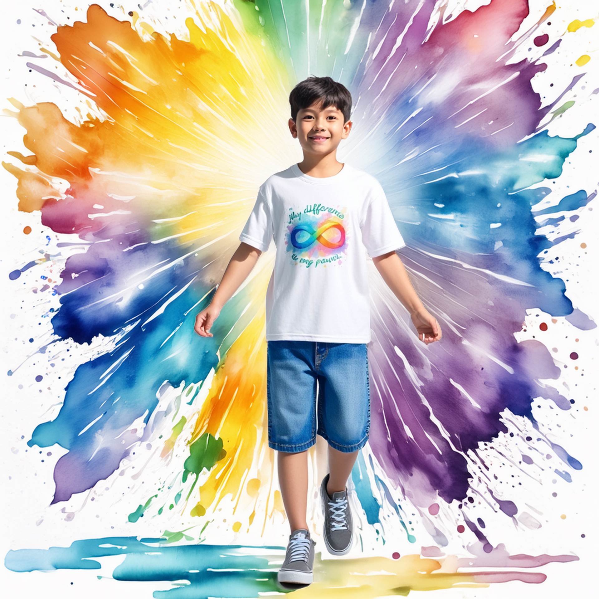 Son symbole infini aux couleurs de l’arc-en-ciel représente l’énergie unique que chaque enfant apporte au monde. 🌟
