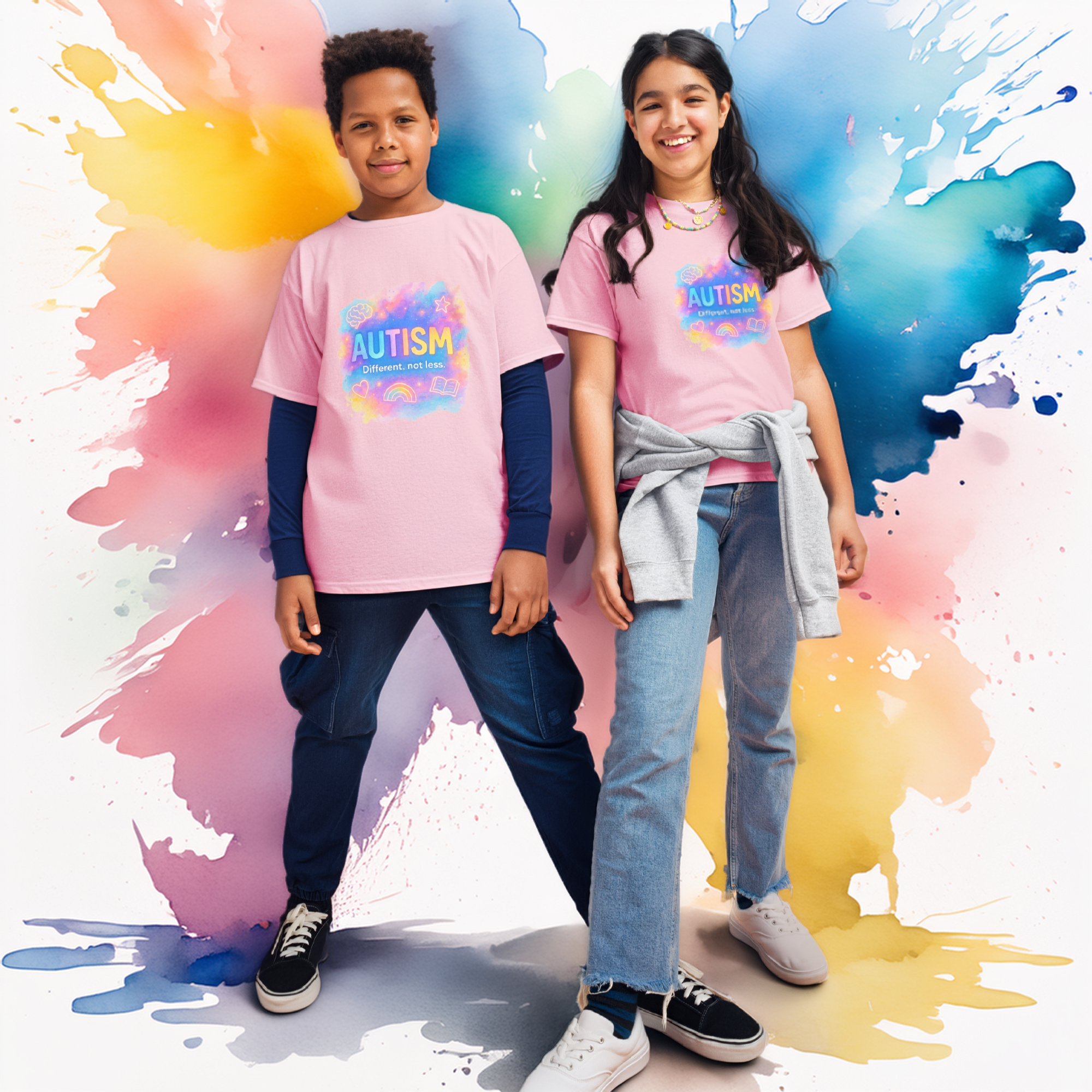 AUTISM – Different, not less rend hommage à la beauté des esprits uniques et à la richesse de la diversité cognitive.
