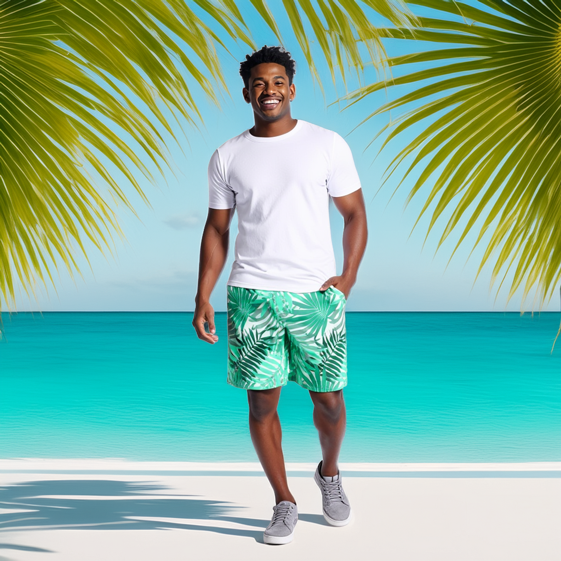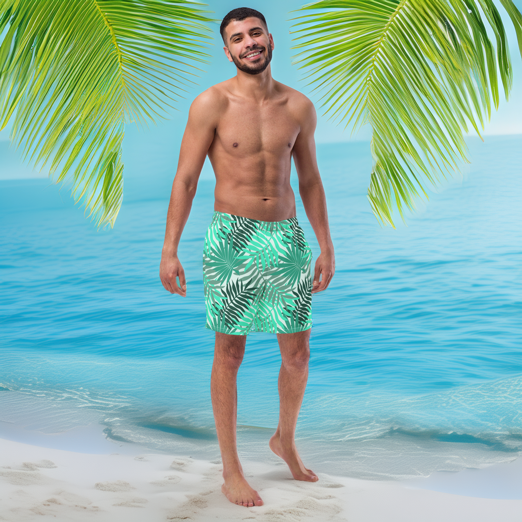 Entre les feuillages luxuriants et les reflets d’émeraude, le short “Emerald Jungle” t’invite à plonger dans la bonne humeur.