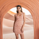 Inspirée des trames artisanales d’Afrique et d’Amérique latine, la robe Tissage Nomade évoque les mains qui tissent, les routes qui se croisent et les cœurs qui s’ouvrent.