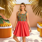🌺 Imprimé tropical exclusif LIENZO : soleils, papayes et feuillages luxuriants, symbole d’abondance et de joie.