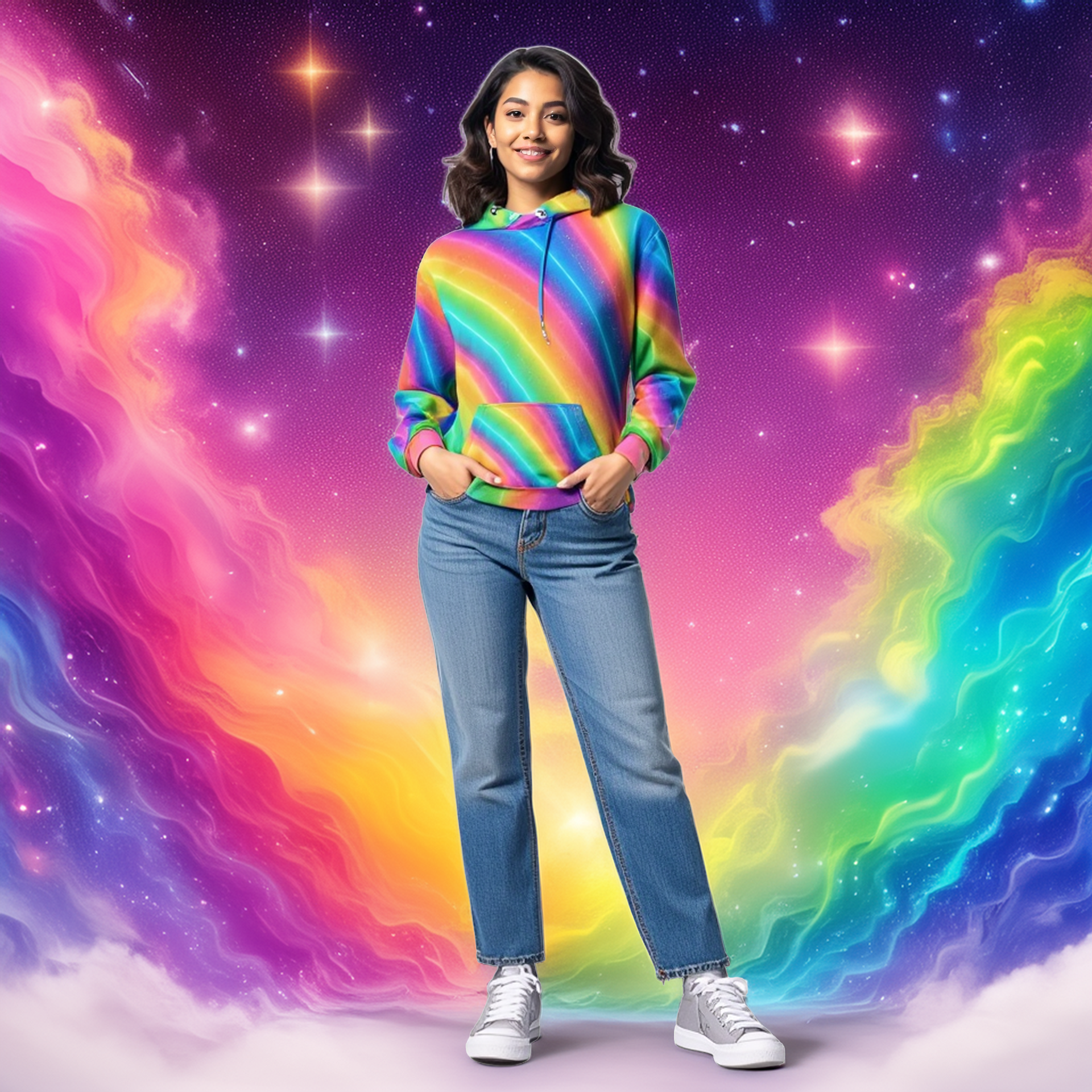 Le sweat Cosmo Glow est une célébration vivante de la liberté et de la joie : chaque teinte y danse comme une étincelle d’énergie pure. 🌈