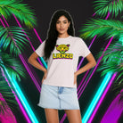 Entre Miami Vice et Super Nintendo, ce t-shirt fait fusionner la force du félin et la nostalgie digitale des années 90.