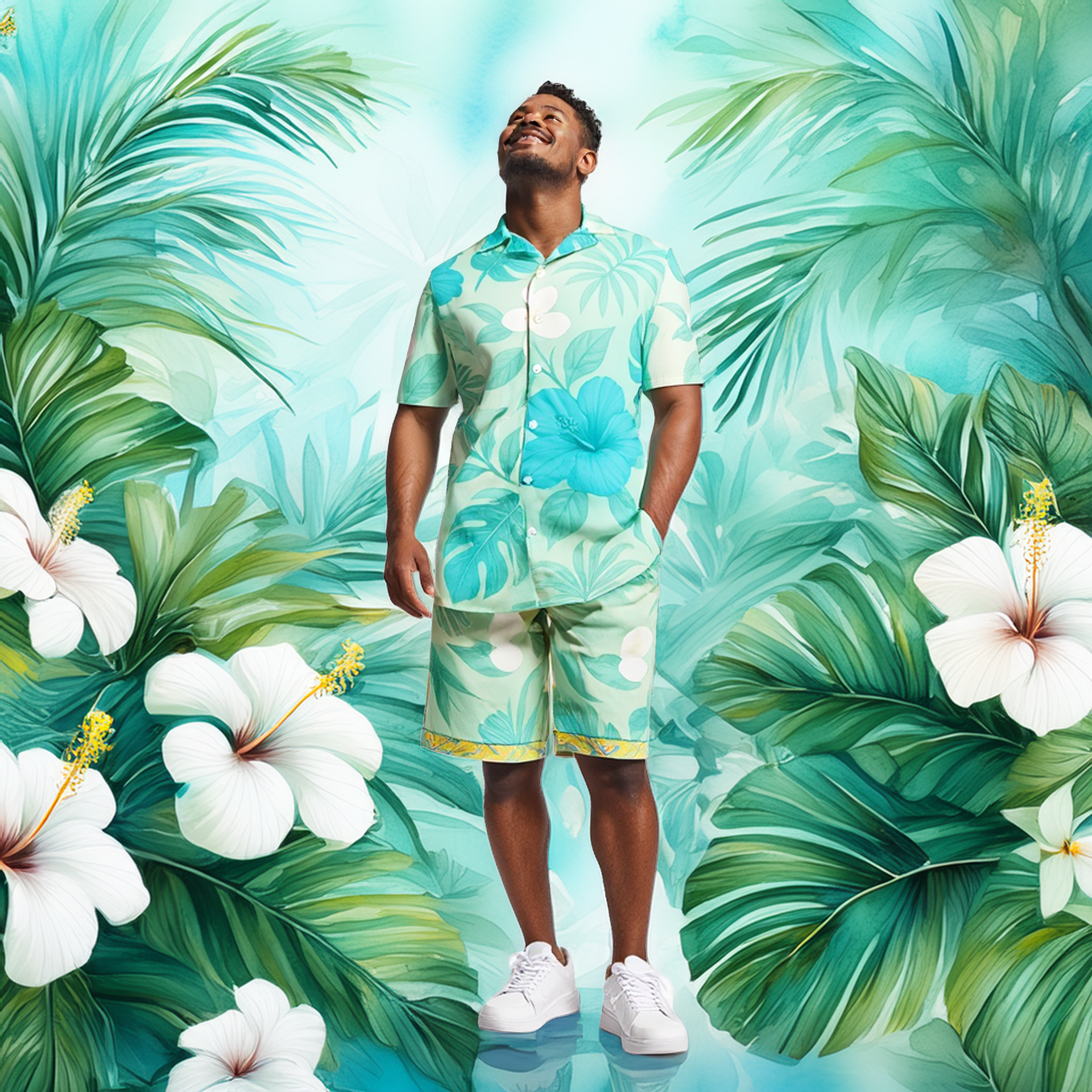 La “Aqua Bloom” incarne la rencontre entre le bleu des lagons et la verdure luxuriante des tropiques.
